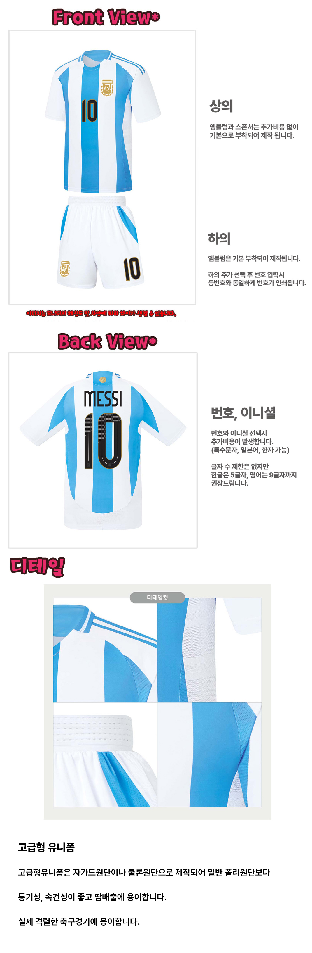 [고급형유니폼] UTU101 아르헨티나 홈형 [반팔세트][4XL]