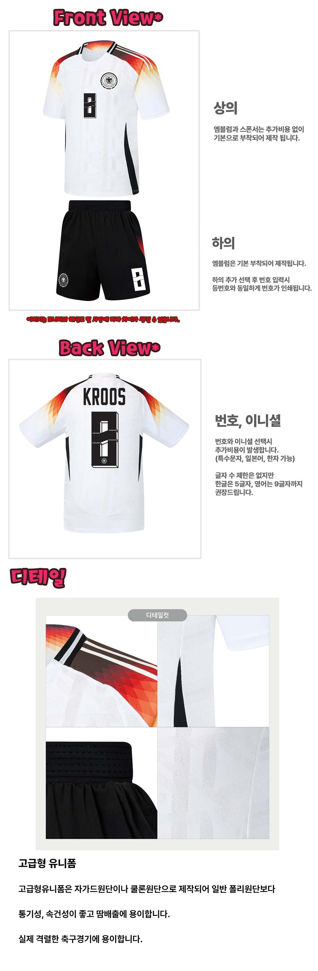 [고급형유니폼] UTU102 독일 홈형 [반팔세트][4XL]